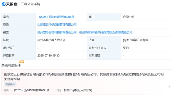 更值得警惕的是,高爷家在收购前已显现资金压力。天眼查数据显示,2025年6月以来,高爷家已发生四笔股权质押,质权人包括杭州联合农村商业银行及收购方依依股份,这意味着公司可能通过股权质押缓解短期资金紧张;同年7月,高爷家还因合同纠纷被山东宠云行供应链管理有限公司诉至杭州市余杭区人民法院,侧面反映出其经营层面的潜在风险。