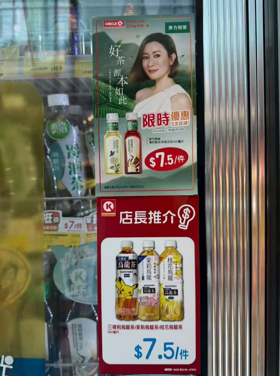 临近内地的中国港澳也成为目标市场。今年夏天,东方树叶的巨幅广告出现在中国香港的巴士上,找来佘诗曼代言的这个无糖茶巨头,开始渗透进当地的便利店商超,并卷起“价格战”。